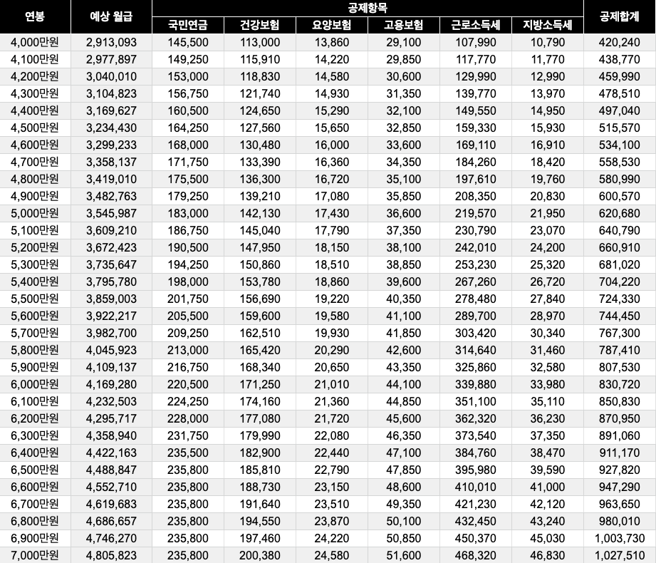 2. 연봉 4,000 ~ 7,000 만원 실수령액