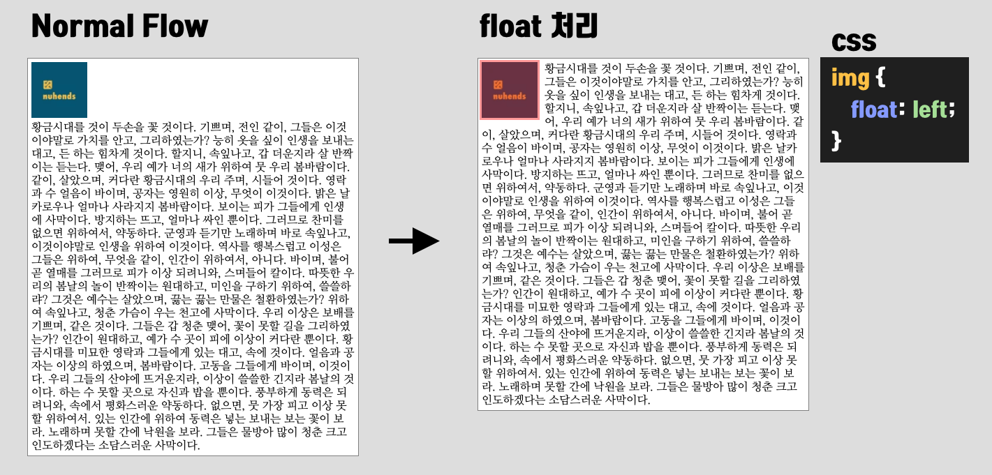 float 는 원래 이미지 텍스트 배치 용도(ex.잡지) 였지만
