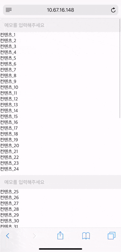이제 강제 스크롤 동작시 어떤 위치로 스크롤 되는지 알아보자. 강제 스크롤 되는 위치는 컨텐츠의 길이에 따라 각각 달라진다.