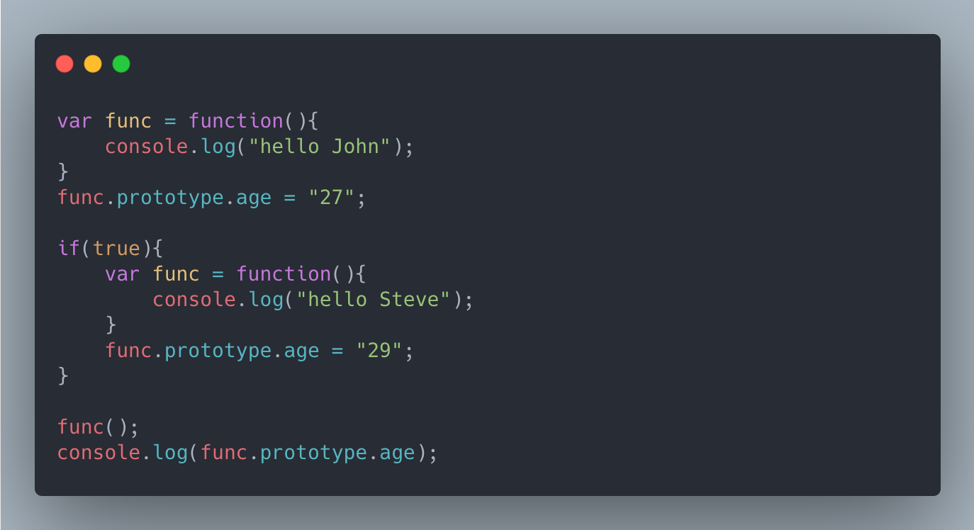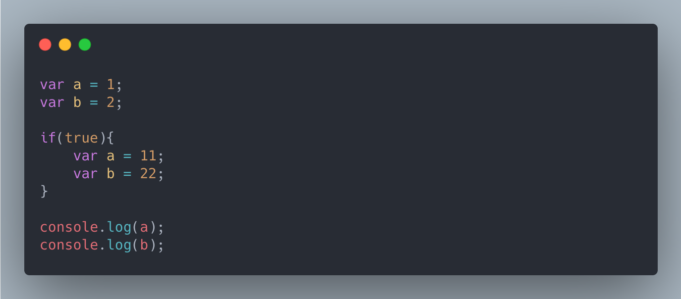 블록 스코프는 ES2015 버전부터 지원되기 시작했으며 if / while / for 등의 코드 블록으로 생성됩니다.