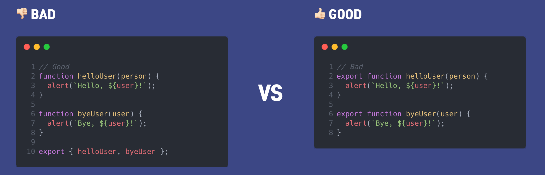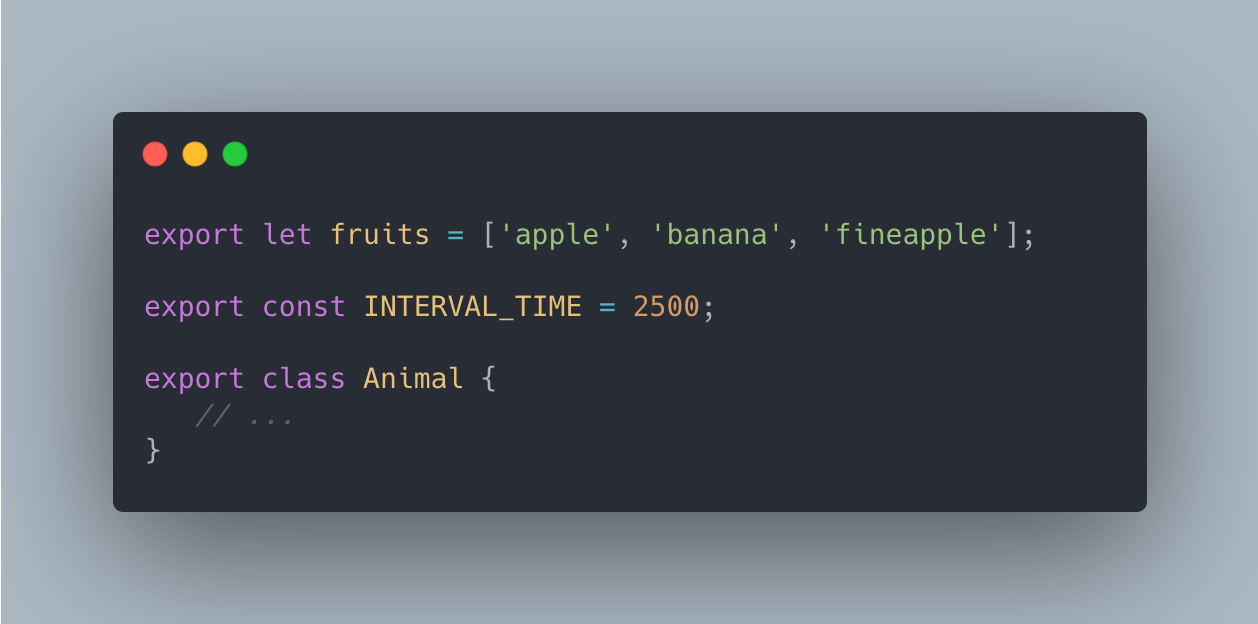 대부분의 자바스크립트 style guide에서 클래스, 함수 선언부 앞에 export를 붙여 내보내기 시에,